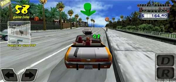 疯狂出租车手机版(Crazy Taxi)是一款模拟驾驶类赛车竞速游戏,玩家将扮演出租车司机接客送往目的地并获得报酬,每一个客人拥有不同的时间限制,你必须在时间内送达即可,否则失败,相反送达仍可进行接客。