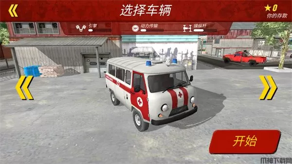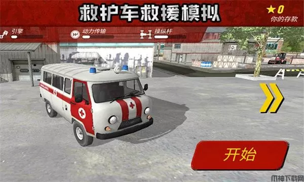 1、下载进入救护车救援模拟游戏,选择你要驾驶的救护车开始你的挑战;