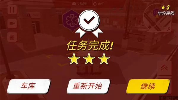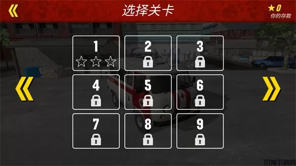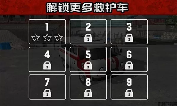5、6辆不同的外观、性能的救护车等待你来驾驶!你可以完成关卡获得星星来解锁它们;