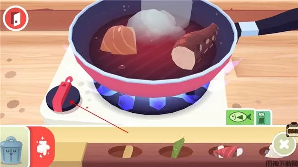1、问候顾客,然后前往冰箱看看你所有新鲜食材。选择大米、金枪鱼、鳄梨、芦笋、鱿鱼、鲑鱼、辣椒、意大利腊肠、小萝卜、甘蔗(不开玩笑!)、姜、土豆、豆腐、虾等等材料。如果你更愿意选择蔬菜,可以切换成素食设置。