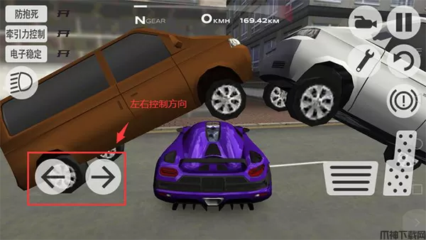 1、在本站下载安装并打开超凡赛车游戏,进入游戏,左边方向键可以控制车辆方向。
