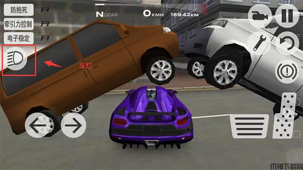 3、车灯按钮在屏幕左边,玩家在游戏过程中可以打开车灯。