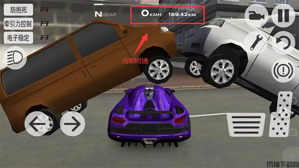 5、在屏幕最上方可以查看赛车时速。