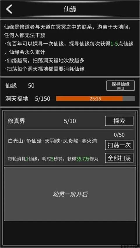 2、仙缘:类似签到系统,每天随机获得仙缘,仙缘用于扫荡洞天福地。