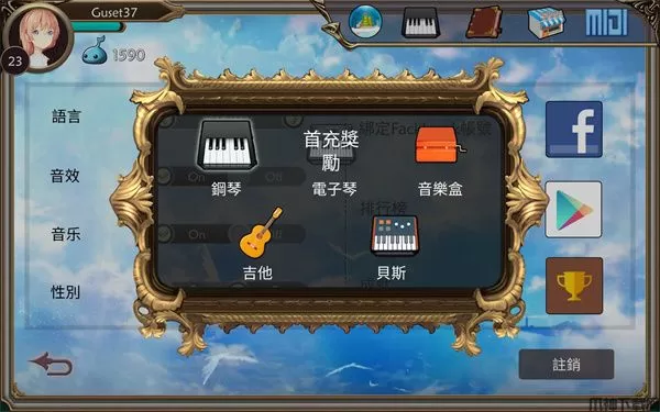 4、多种乐器选择,如经典大钢琴,电子琴,吉他等;