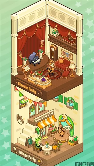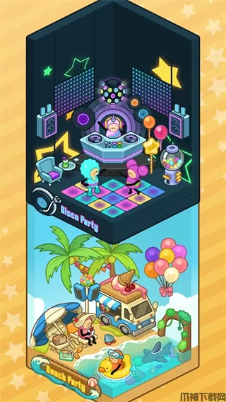 3、小梦幻的装饰,可爱的治愈,开始和猫、狗、鲨鱼和鬼魂玩,各种派对嘉宾和各种有趣的道具加入他们,随时随地开始