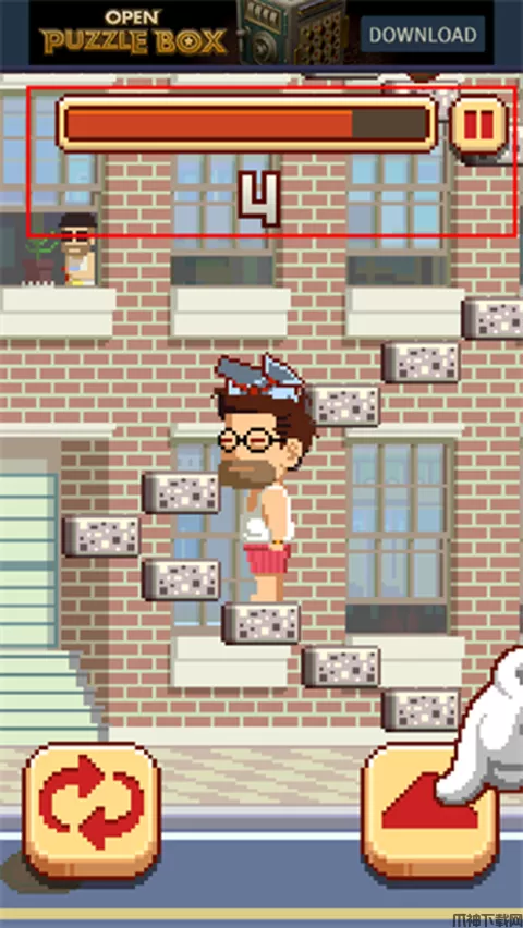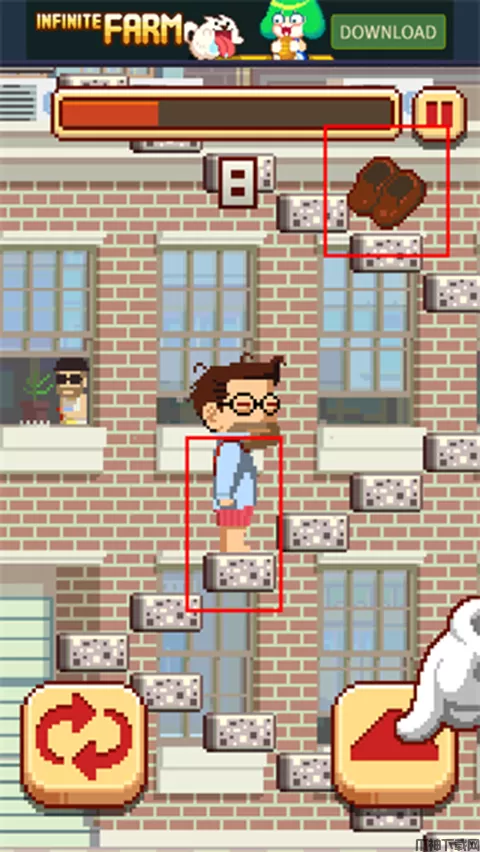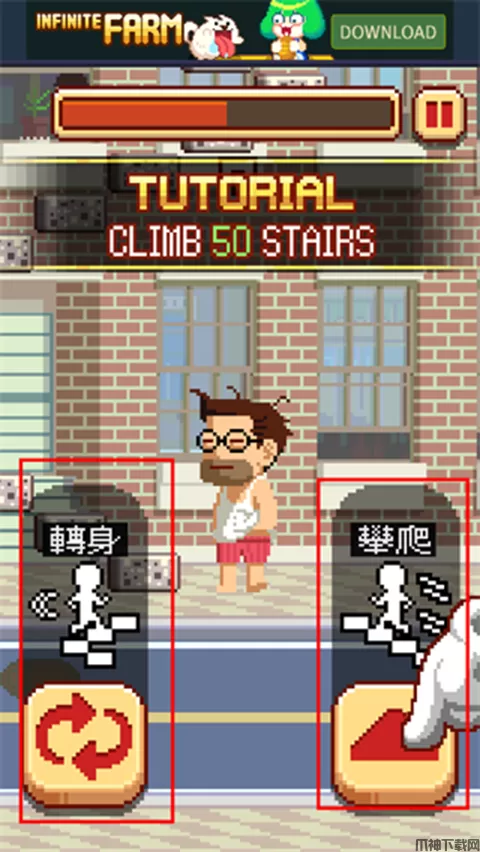 挑战巅峰官方版是一款玩法新颖,轻度休闲的快节奏益智攀爬游戏。该款游戏中采用了经典卡通的像素人物、场景画风设计,不但拥有着中国、太空城市、无限之塔、饼干王国等多个主题场景、丰富多样的宠物和角色造型供你挑选,再搭配上上贴合主题的背景音效、可给于大家全新的游戏体验。而且游戏在玩法上的设计也十分的通俗易懂,只有2个按键一个是转身,另一个是爬上去,玩家只需控制角色,并根据不同场景中所呈现的楼梯走向,观察好方向快速实现攀爬即可。