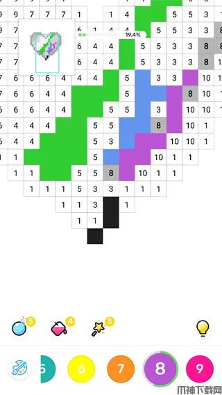 4、按住数字可以进行填色。