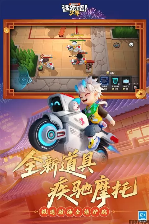 2、新道具卡小摩托:既能冲刺狂飙上前线,又可救援倒地队友当奶妈,双重buff助力轻松脱围!