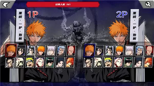 3、选择对战人物,分1P和2P,1P是玩家控制而2P则由电脑控制;