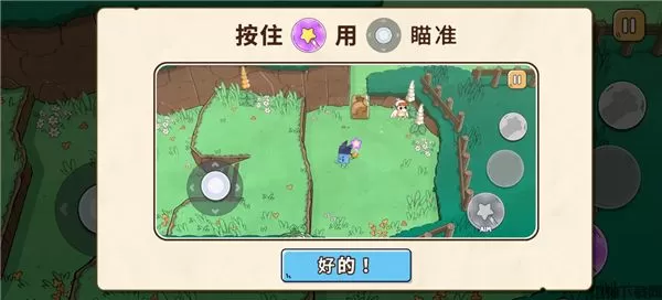 3、进入场景左下角是移动键,右边有一个瞄准键;
