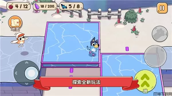 在你滑行、飞翔和滑冰穿过每个关卡时,发现隐藏的宝藏,解决有趣的谜题,并接受令人愉快的迷你任务。与古怪的角色互动,帮助迷失的小动物返回家园。到处寻找“鹅食”和珠子,以解锁冒险中的新时刻,让你带着布鲁伊在她的任务中不断前进。