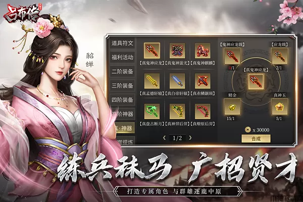 三国志吕布传最新版是一款非常经典三国题材策略手游,游戏以三国历史人物吕布为主角,游戏画面无比壮观宏伟,高清质风格画面能够自由竞技战斗,极具浓郁中国风,3d高清人物精模,独具匠心创意还原三国名将。游戏包含众多经典大战,以不一样的视角聚焦于吕布、吕玲绮、臧霸、张辽等武将,展现全新的三国故事。在游戏中将根据玩家不同的选择而改变吕布的结局,是复兴汉室,还是一统天下这些都由玩家自己选择,本作在基于三国志曹操传的基础上添加了大量的原创剧情,并且适当的增加了游戏难度和一些特殊的系统,让玩家拥有更好的游戏体验。另外,游戏为玩家提供了大量的关卡,难度十分的简单,新手玩家可以轻松入门体验对战刺激,模式也很多样,精彩的剧情可以带你轻松了解吕布的一身,更有机会手持方天画戟身骑赤兔驰骋沙场。同时在新的版本中还设置了新出战位系统,以及替换部分老旧的场景图片,并且还优化了游戏细节提升了流畅度,给玩家带来最好的游戏体验,喜欢的朋友欢迎下载体验。