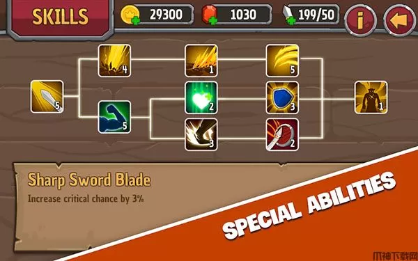 4、前期并没有解锁所有的技能,都需要玩家一一来解锁,击杀所有敌人就可以通关;