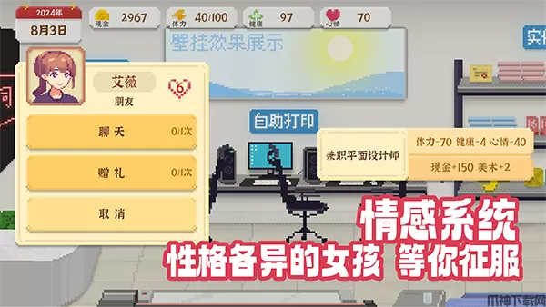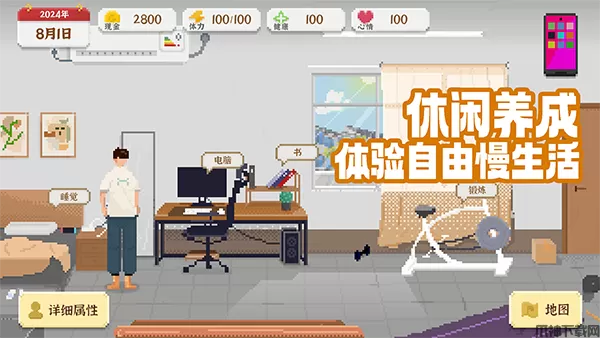 我独自生活是一款像素风人生模拟游戏,玩家在游戏中扮演一位从大城市回到小县城的青年,将独自重新开始新生活,体验不一样的人生。