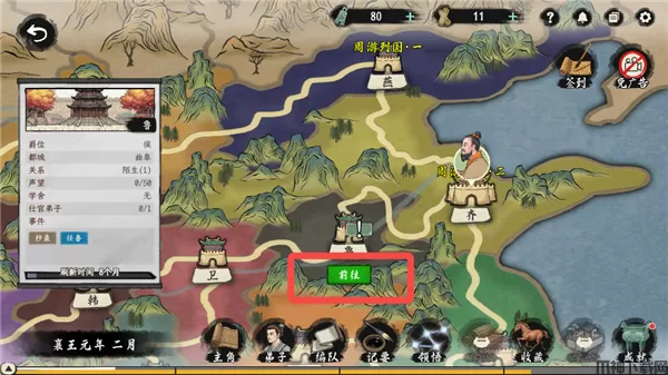 1、玩家每次只能移动至相邻的诸侯国,且每次移动需要一个月的时间。