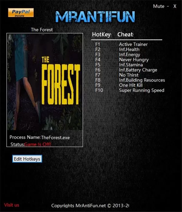 森林修改器是一款强大的森林游戏修改工具,具有无限生命、无限能量、无限体力、无限电池电量、不会饥饿、不会口渴等多种强大功能,可更好的帮助用户进行游戏的初期体验。