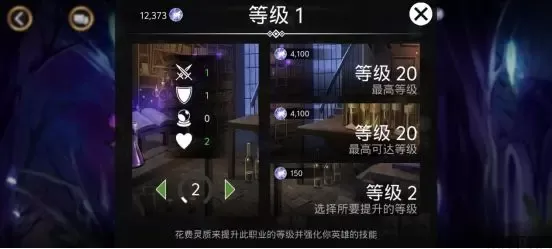 点击升级按钮,你会看到熟悉的界面。提升职业等级同样需要消耗灵质,随着等级提升,你的英雄在使用该职业时,攻击、护甲、生命等三围属性会得到增强。