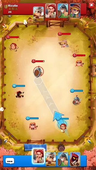 粉碎四人组游戏中可以选择4个不同的人物,攻击顺序是根据玩家安排人物上场的顺序定的,攻击是通过打弹弓的方式进行的,这里你可以根据需求进行微调,调整完成松开即可开始攻击,直到击败其他人的人物或被其他人击败人物才会结束。另外,粉碎四人组游戏中每胜利一场都会获得水晶球,由于每个水晶球颜色不同,打开水晶球所消耗的时间有所不同,打开水晶球后还会随机获得相应的奖励。