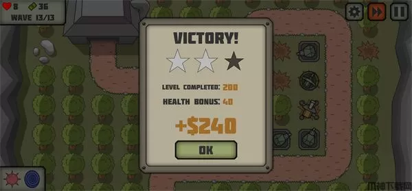7、每一个关卡都有着大量的波数,在血量消失之前成功抵御敌人的进攻即可获得游戏胜利;