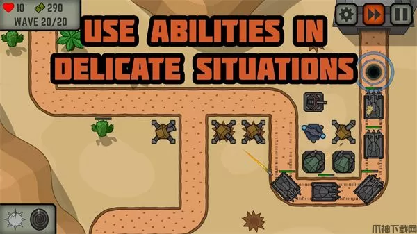 为了让游戏的玩法不再单调,战术战争塔防游戏还增加了两种特殊能力,随着关卡的增加,敌人的每一个步兵,摩托和坦克师血量会有所提高,你可以使用特殊能力快速的消灭他们,更多精彩的战术防御等你体验,享受一场全新的战争策略游戏,快来下载体验一下吧。