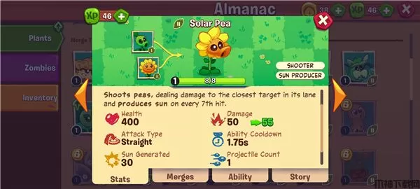 植物大战僵尸3国际版新增融合玩法,玩家可以将两个植物融合起来,不同的植物结合起来将会形成不同的形态。植物融合后会得到强化,拥有更高的数值以及更强的机制,如两个豌豆射手互相组合将形成双发射手,其拥有更高血量并能连续发射两次子弹,而豌豆射手与向日葵组成则形成阳光豌豆射手,每次第七发将打出阳光子弹,击中僵尸后掉落阳光。来融合打造你的植物阵容,与好友一起建设繁荣的社区!