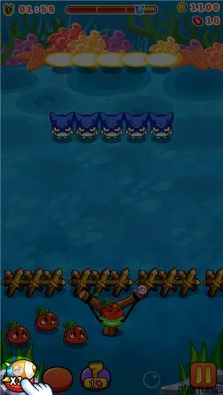 5、拉动弹弓瞄准怪物即可发射蔬菜;