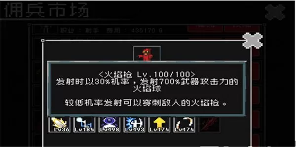 在游戏中也有许多的人物,上方第一个就是玩家操控的,而后面的人物都是雇佣兵,雇佣兵全是点击“雇佣”,然后用钱买来的,并且每天都需要支付给他们一笔工资,不过不用担心费用太高,打一次关卡就可获得很多的金币(游戏中的天数是以关卡数量来算的)。