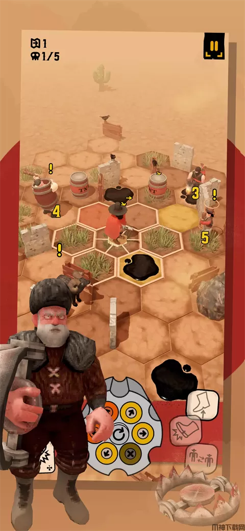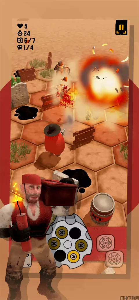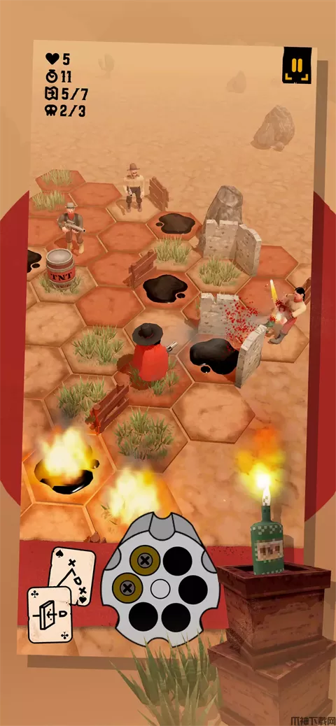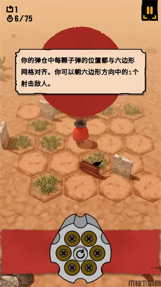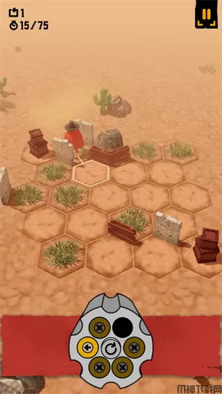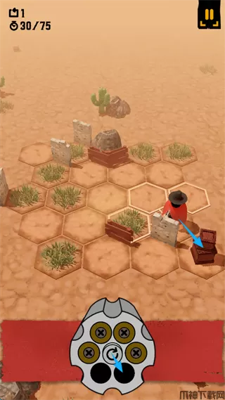 2、屏幕下方的弹仓不仅仅是标识子弹的方式,还是可以攻击的方向,并且牛仔射击一次,弹仓就会转动一次。