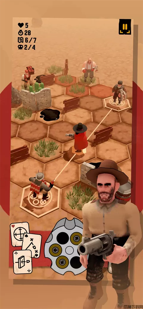 Guncho是一款单人回合制战术野西部射击类Roguelike游戏,玩家将回到19世界的美国西部,你需要成为西部牛仔,骑着一头小毛驴,在荒漠对抗土匪强盗。Guncho拥有不同于其他游戏的游戏机制,左轮手枪的六发子弹对应地图中六边形网格的六个方向,每次射击都会使得左轮手枪的弹仓旋转一次,并且游戏中还拥有炸药桶或者仙人掌的环境陷阱,这就需要玩家拥有足够的策略以应对接下来的战斗,每次的通关,都可以选择提升子弹还是技能,从而进一步提升自身的战术实力。