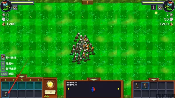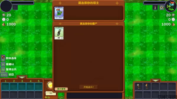 3、选择领主和僵尸炮兵士兵后开始战斗。