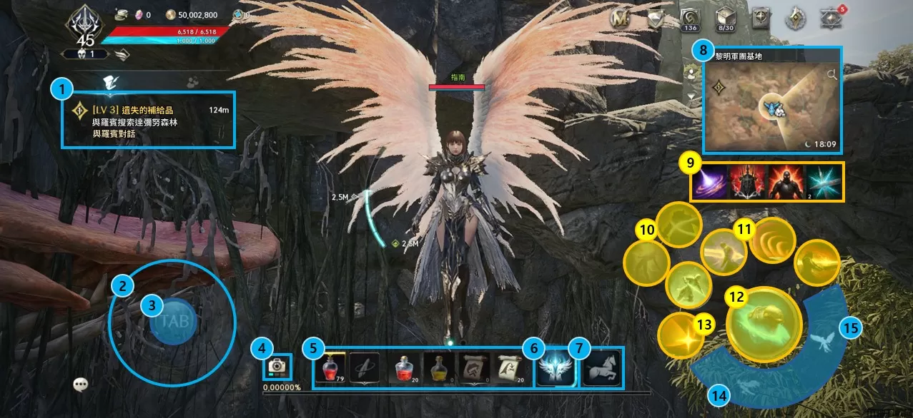 10、迷你地图:可查看角色附近位置信息的迷你地图,点击即可进入地图信息界面