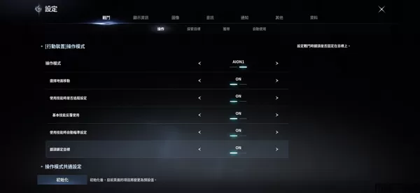 在手机设备环境下默认设置为AION1模式,玩家可根据需求前往【环境设置】>【战斗】>【操作模式】更改设置并使用。