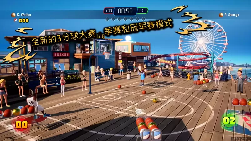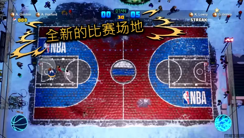 NBA2K欢乐竞技场2(NBA 2K Playgrounds 2)是一款街机风格的篮球竞技类体育游戏,采用卡通画风和大头特效设计,色彩鲜明且视觉冲击力强。