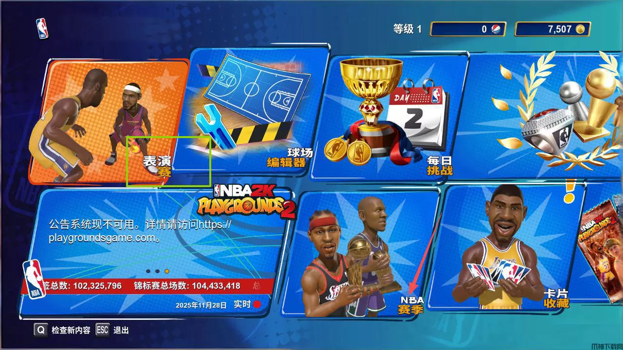 6、随后玩家可以自由选择比赛模式,有表演赛和NBA赛季。
