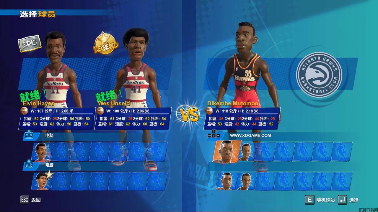 11、玩家可以选择自己操控的球员,每个球员都有各自的特点,擅长投篮的,擅长抢球的,当然,也有全能球员。