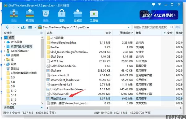 1、在本站下载小骨英雄杀手免安装中文绿色版并通过WINRAR软件解压缩获取到两个解压文件选择第二文件中的开始游戏exe文件打开;