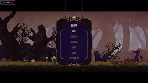 同时小骨英雄杀手当中二头身的主角与悠扬的音乐,搭配上暖色系的滤镜与明亮的背景设计,让你化身骷髅却不觉阴森,反而有一些沐浴在阳光下的温暖,悠扬的小调与精致的像素场景相得益彰,你甚至会怀疑自己进入了某个童话故事的世界,除了你是个骷髅外。并且,游戏当中无厘头的风格与诙谐的氛围,再者出色的战斗打击感与游戏核心玩法想切换,相辅相成成就了主角利用切换头颅的机制,快速完成各种连击,虽看起来花里胡哨,但实际上手的操作简单无比,而且时不时阵亡后,诙谐的提示页面,让不少玩家忍俊不禁大笑。