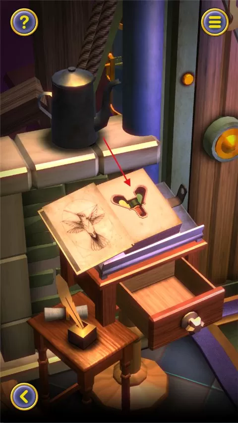 2、旋转场景点击抽屉并拉开获取钥匙;