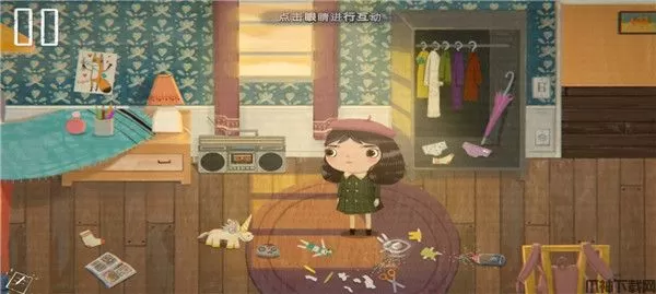 2、来到物品旁边后点击眼睛可以和物品进行互动