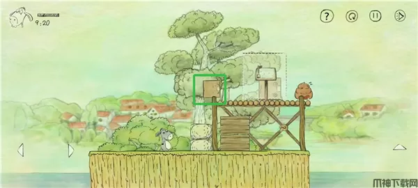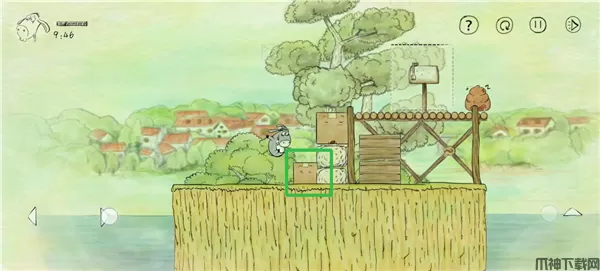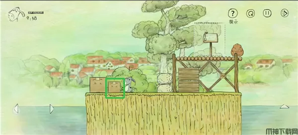 3、将小箱子推至石头边。