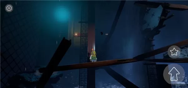 1、玩家进入游戏会有一个剧情,并介绍相应的操作说明,观看完后整个船已经进水了,现在我们需要操控角色脱离前方上方楼层;
