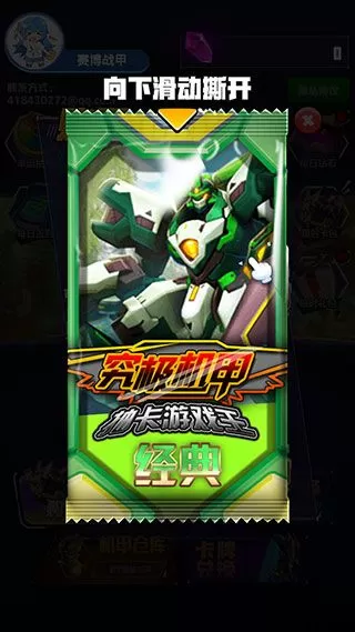 究极机甲抽卡游戏王是一款卡牌收集对战类手游,该游戏以科幻机甲为主题,里面拥有着许多不同的机甲战士,它们都是需要玩家通过抽卡的方式来进行收集的。随着玩家收集进度的提升,你还能解锁更多不同类型的主题卡包,并从中获得更加稀有的机甲卡片。当然,如果你收集到了强力的卡片,那么你就能够将它们添加到你的出战阵容中,这时你的出战队伍也会获得更高的战力加成,从而一举击溃你的敌人,闯过重重关卡,获得大量的资源奖励。有了这些资源,你就能开次开启卡包,抽取更加稀有的机甲卡片了。