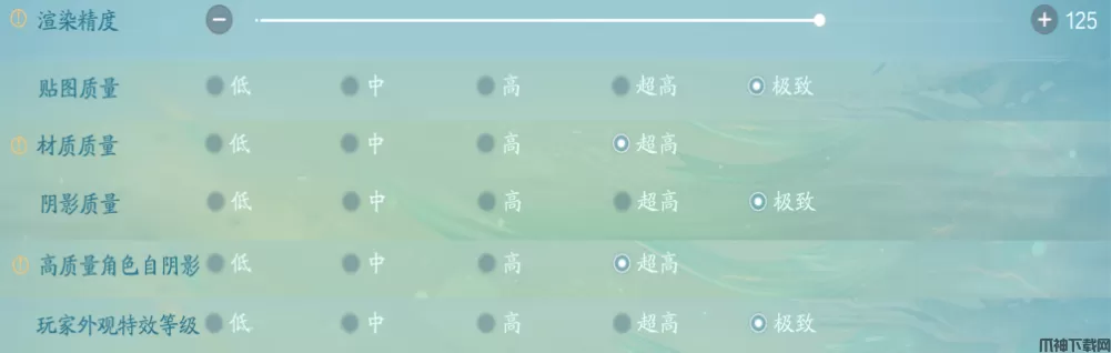 1、对于想360度无死角还原你的美貌、喜欢自拍打卡的仙友:可以通过提高渲染精度,贴图质量、材质质量、阴影质量、高质量角色自阴影、玩家外观特效等级这些设置提高人物角色的精致程度