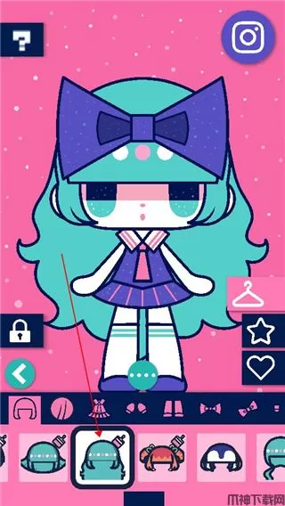 3、点击换装游戏,玩家可以给自己的角色进行各种换装操作,有发型,裙子,蝴蝶结,领带等多种装饰,玩家可以根据自己的喜好随意选择。