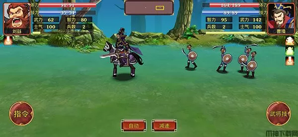 3、对战界面用可爱卡通的品牌形象主要表现出去,能立即显示屏上的命令和武将技。