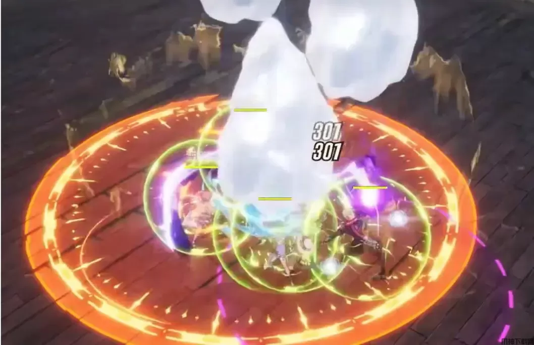 1、点名分摊,BOSS点名一名玩家高伤,其他玩家进圈分摊伤害,否则被点名玩家必死。