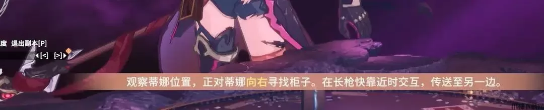 6、蒂娜变大然后长枪横扫,去BOSS右边的柜子等长枪划一半的时候传送即可,其实副本里这个机制已经说的挺清楚了,传送完观察蒂娜位置,然后再重复一遍流程即可。
