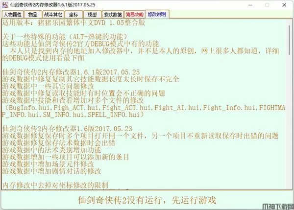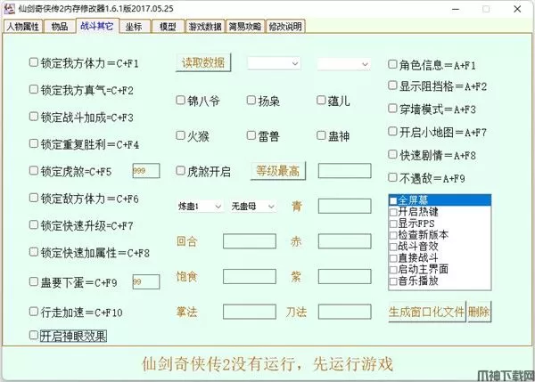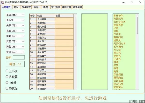 2、打开仙剑奇侠传2修改器,并再次进入游戏
