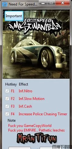 极品飞车9最高通缉四项修改器MrAntiFun版是用于极品飞车9的游戏辅助工具。